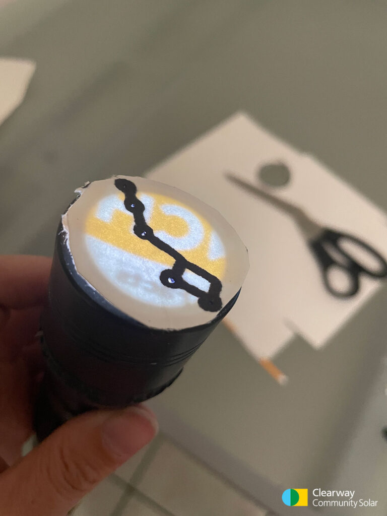 Cut out your circles. If the cardboard you used is very thin, you may need to use the Sharpie to color the surface of the circle black. This way the light is only able to pass through the holes that you poked.