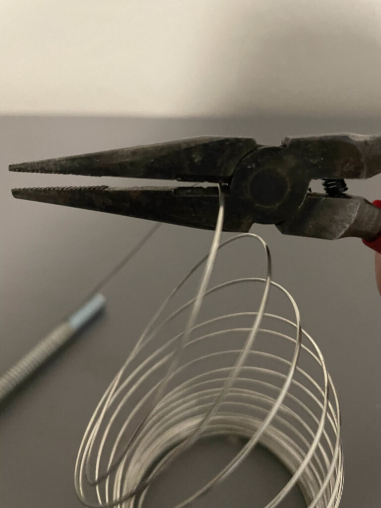 Following along with the corkscrew pattern in the screw, wrap the wire in one direction tightly around the screw from end to end.