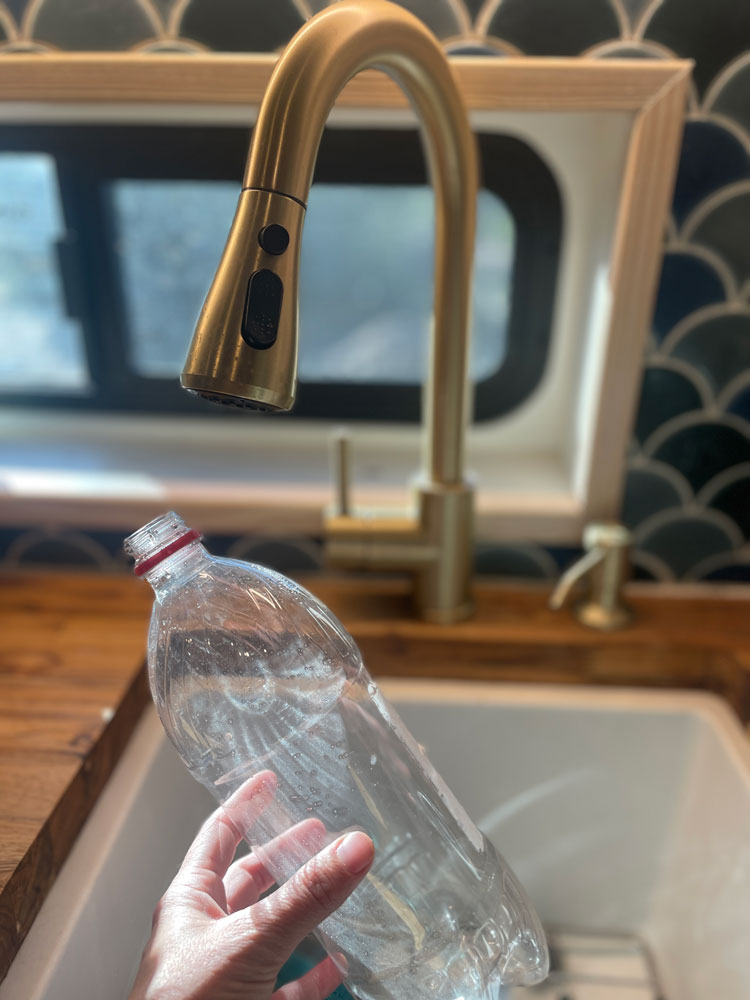 Place several small rocks in the bottom of the bottle (for weight), then fill the bottle with water to the 0 mark. This will calibrate your gauge.
